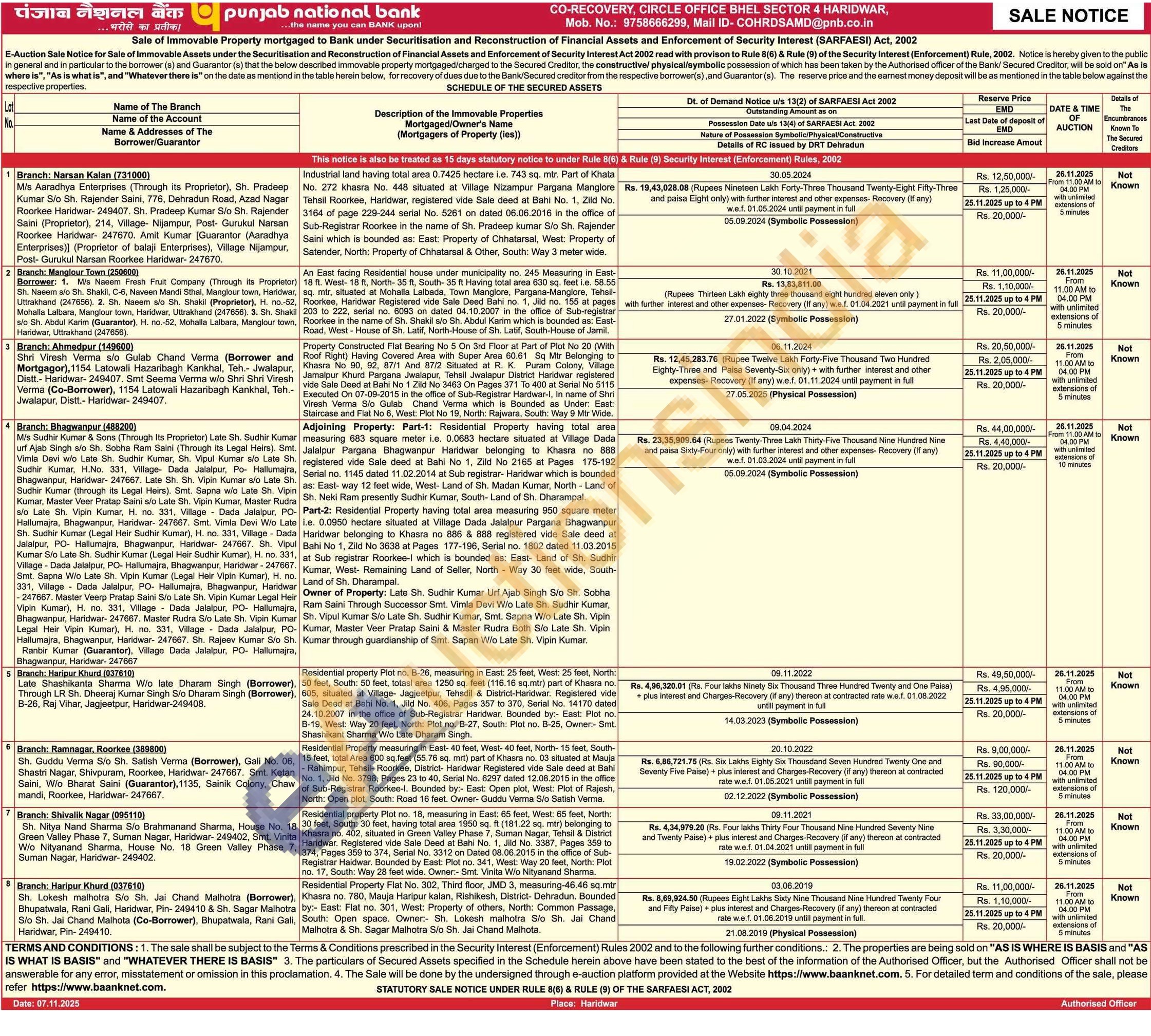 Residential Property having total area. measuring 683 square meter i.e. 0.0683 hectare situated at Village Dada Jalalpur Pargana Bhagwanpur Haridwar belonging to Khasra no 888 registered vide Sale deed at Bahi No 1, Zild No 2165 at Pages 175-192 Serial no. 1145 dated 11.02.2014 at Sub registrar- Haridwar which is bounded as: East-way 12 feet wide, West- Land of Sh. Madan Kumar, North - Land of Sh. Neki Ram presently Sudhir Kumar, South- Land of Sh. Dharampal. Part-2: Residential Property having total area measuring 950 square meter i.e. 0.0950 hectare situated at Village Dada Jalalpur Pargana Bhagwanpur Haridwar belonging to Khasra no 886 & 888 registered vide Sale deed at Bahi No 1, Zild No 3638 at Pages 177-196, Serial no. 1802 dated 11.03.2015 at Sub registrar Roorkee-I which is bounded as: East- Land of Sh. Sudhir Kumar, West- Remaining