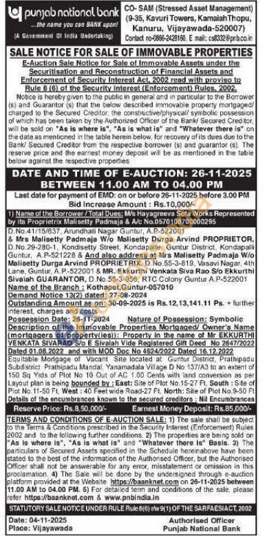 Description of the Immovable Properties Mortgaged/ Owner's Name (mortgagers of property(les)): Property in the name of Mr EKKURTHI