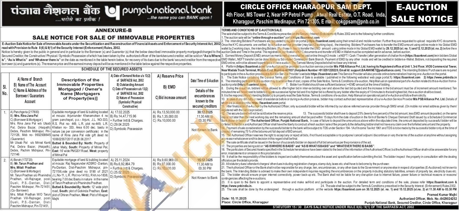 Pramod Kumar Majhi Authorized Officer Mobile No : 8429024252