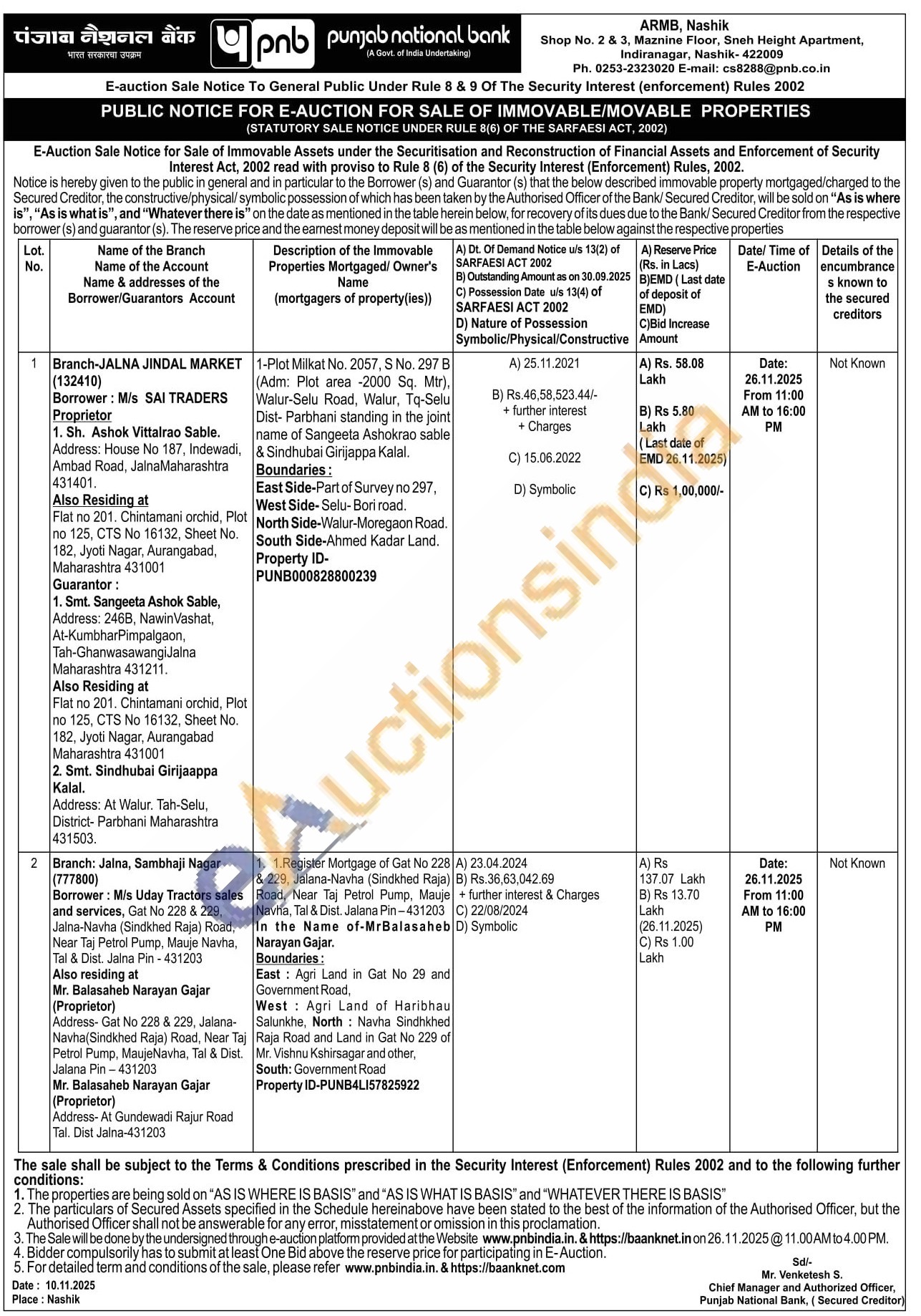 1.Register Mortgage of Gat No 228 & 229, Jalana-Navha (Sindkhed Raja) Road, Near Taj Petrol Pump, Mauje Navha, Tal & Dist. Jalna Pin-431203 In the Name of-MrBalasaheb Narayan Gajar. Boundaries: East: Agri Land in Gat No 29 and Govemment Road, West: Agri Land of Haribhau Salunkhe, North Navha Sindhkhed Raja Road and Land in Gat No 229 of Mr. Vishnu Kshirsagar and other, South: Government Road Property ID-PUNB4L157825922