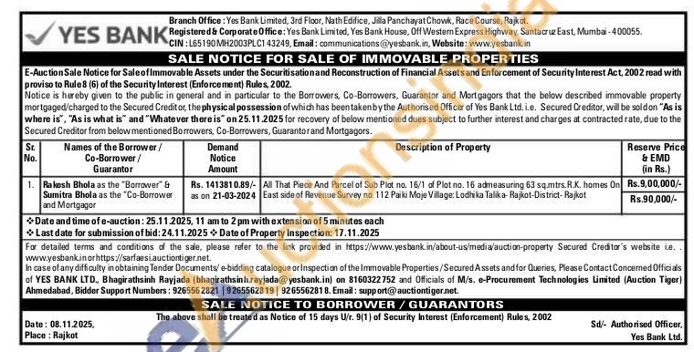 All that piece And Parcel of Sub Plot no. 16/1 of Plot no. 16 admeasuring 63 sq.mtrs.R.K. homes On East side of Revenue Survey no. 112 Paiki Moje Village: Lodhika Talika- Rajkot-District-Rajkot