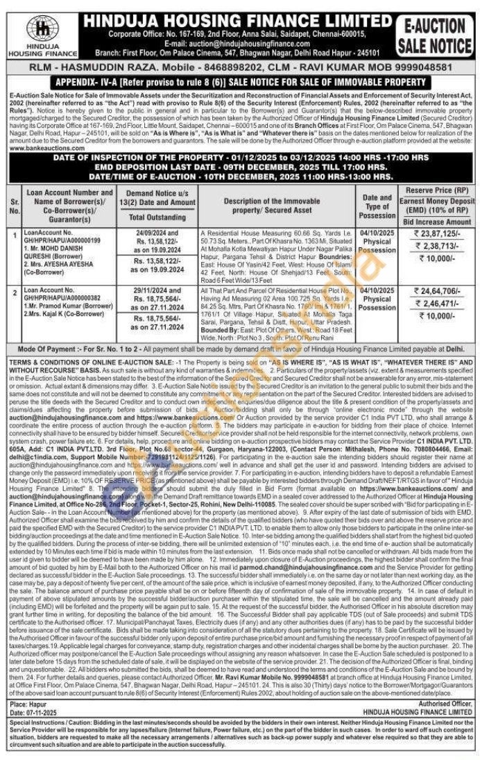 All That Part And Parcel Of Residential House Plot No. Having Ad Meaturing 02 Area 100.725 Sq. Yards Le.. 84.25 Sq. Mtrs, Part Of Khasra No. 1760/ imi & 1761/1. 1761/1 Of Vitage Hapur, Situated Al Mohalla Taga Sarai, Pargana, Tehsil & Distt, Hapur, Uttar Pradesh Bounded By: East: Plot Of Others. West: Road 18 Fest Wide North Plot No 3, South Plot Of Renu Rani