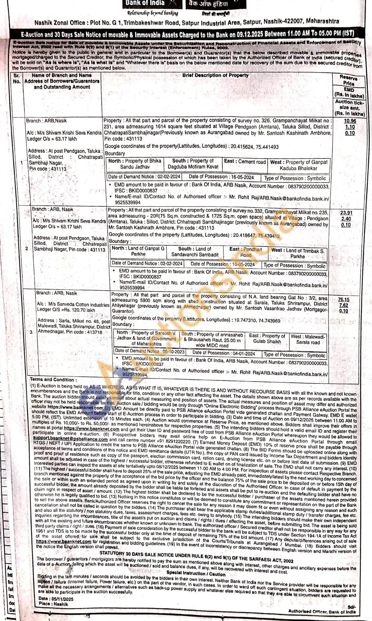 Property All that part and psroul of the property consisting of N.A land beanng Gat No: 3/2, area admeasuring 5000 sqm along with shed construction situated at Sarala, Taluka Shrirampur, D Guarantor) District Ahitysragar (prewously known as Ahmednagar) owned by Mr. Santosh Vasantrao Jadhav