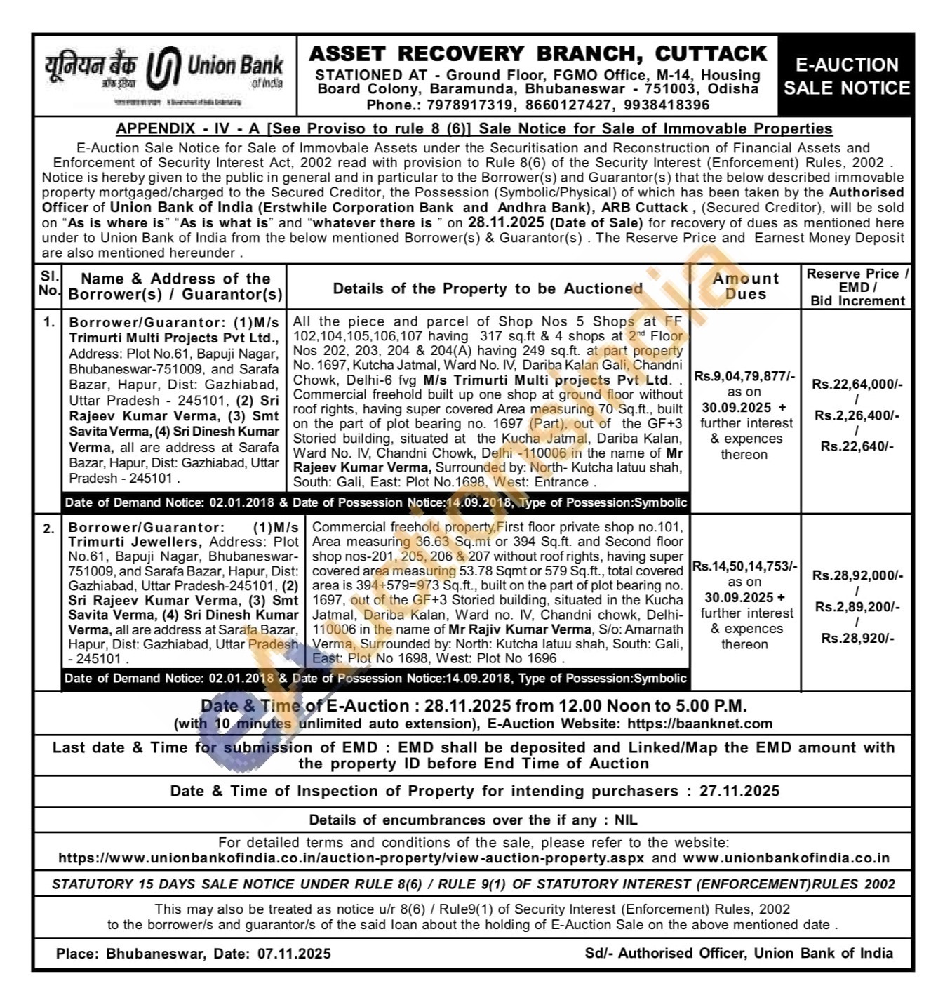 All the piece and parcel of Shop Nos 5 Shops at FF 102, 104, 105, 106,107 having 317 sq.ft & 4 shops at 2nd Floor Nos 202, 203, 204 & 204(A) having 249 sq.ft. at part property No. 1697, Kutcha Jatmal, Ward No. IV, Dariba Kalan Gali, Chandni Chowk, Delhi-6 fvg M/s Trimurti Multi projects Pvt Ltd.. Commercial freehold built up one shop at ground floor without roof rights, having super covered Area measuring 70 Sq.ft., built on the part of plot bearing no. 1697 (Part), out of the GF+3 Storied building, situated at the Kucha Jatmal, Dariba Kalan, Ward No. IV, Chandni Chowk, Delhi-110006 in the name of Mr Rajeev Kumar Verma, Surrounded by: North- Kutcha latuu shah, South: Gali, East: Plot No.1698, West: Entrance
