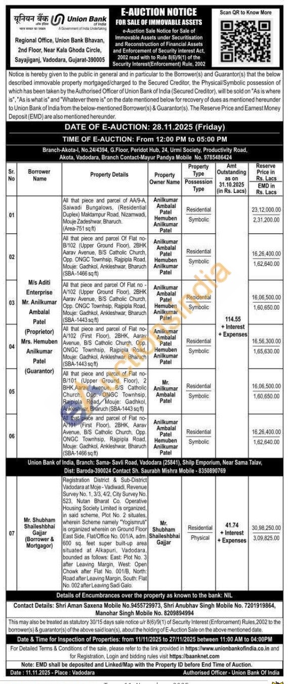 Registration District & Sub-District Vadodara at Moje-Vadiwadi, Revenue Survey No. 1, 3/3, 4/2, City Survey No. 523, Nutan Bharat Co. Operative Housing Society Limited is organized, in said scheme, Plot No. 2 situates, wherein Scheme namely "Yogismruti" is organized wherein on Ground Floor East Side, Flat/Office No. 001/A, adm. 600 sq. feet super built-up area situated at Alkapuri, Vadodara, bounded as follows: East: Plot No. 3 after Leaving Margin, West: Open Chowk after Flat No. 001/B, North: Road after Leaving Margin, South: Flat No. 002 after Leaving Sadi Galo