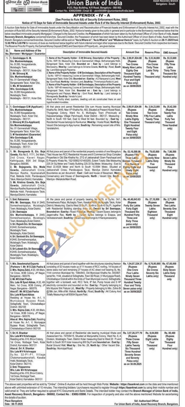 3) All that piece and parcel of the residential property consists of one Mangaluru Tiled House two RCC Residential Houses and 6 Commercial Shop Complex Properties in Old Site Khatha No. 27/2 of Jakkanahalli Gram Panchayat and E-Property Khata No. 152100602101400293, Extent Totally Site Measuring 225.34 Sq. Meter and Totally Building 225.33 Sq.Meter, Measuring: East to West 22.4028 Meter and North to South 10.0584 Meter, Situated at Jakkanahalli Cross, Pandavapura Taluk, Mandya District Karnataka Boundaries as per document: East: Galli and house of Basamani, West: Conservancy and House of Beemegowda, North: Vacant Site, South: Mandya-Melukote Main Road.