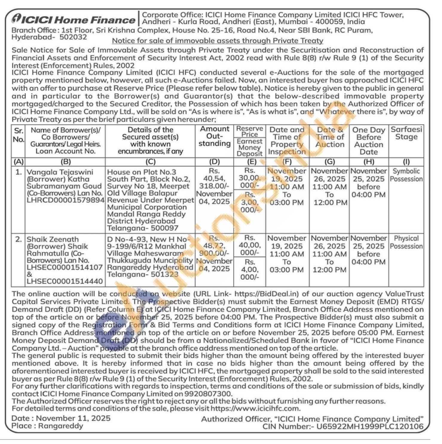 contact ICICI Home Finance Company Limited on 9920807300