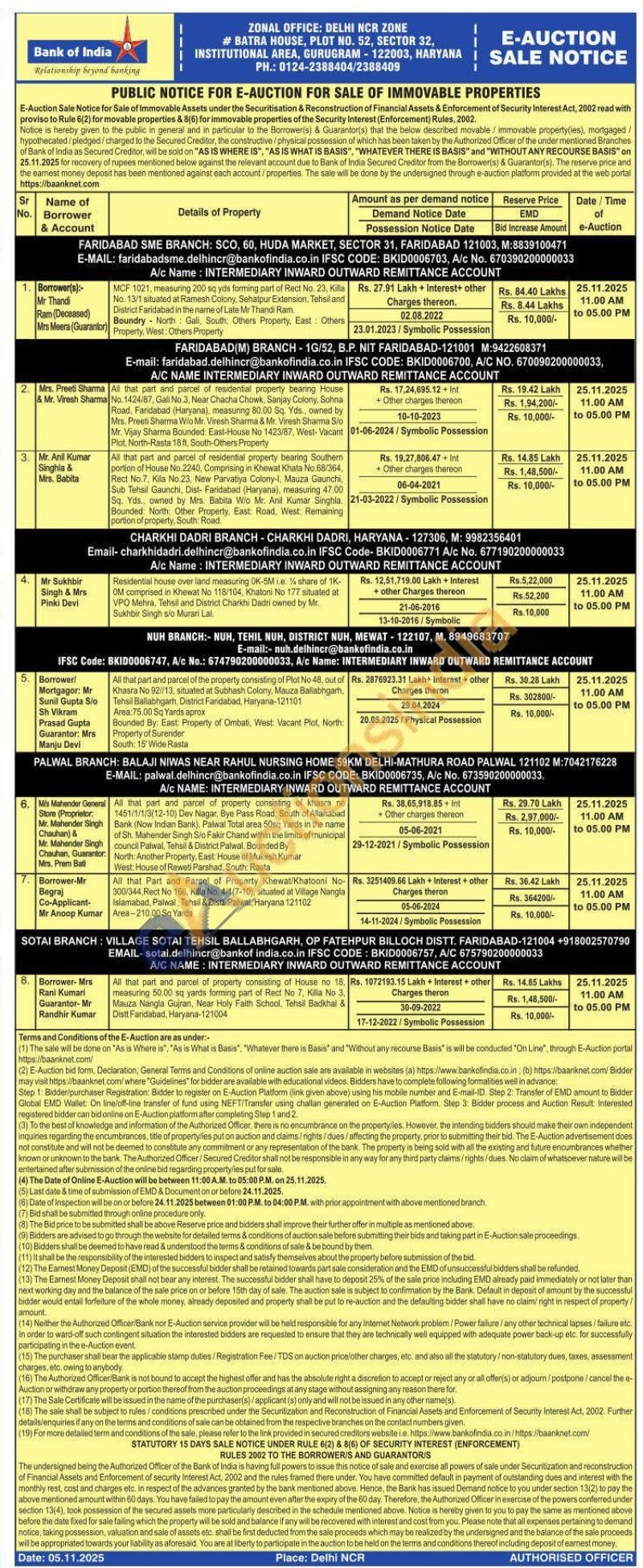 All that part and parcel of property consisting of khasra no 1451/1/1/3(12-10) Dev Nagar, Bye Pass Road, South of Allahabad Bank (Now Indian Bank), Palwal Total area 50sq Yards in the name of Sh. Mahender Singh S/o Fakir Chand within the limits of municipal council Palwal, Tehsil & District Palwal. Bounded By North: Another Property, East: House of Mukesh Kumar West: House of Raweti Parshad, South: Rasta