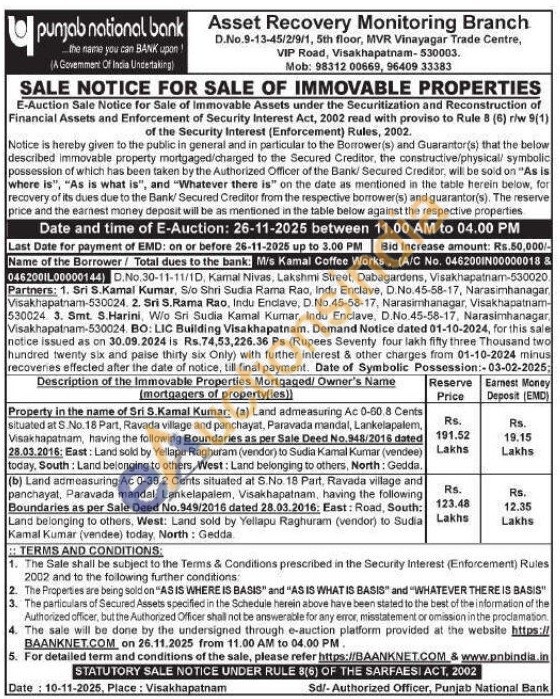 Property in the name of Sri S. Kamal Kumar: (a) Land admeasuring Ac 0-60.8 Cents situated at S.No. 18 Part, Ravada village and panchayat, Paravada mandal, Lankelapalem, Visakhapatnam, having the following Boundaries as per Sale Deed No.948/2016 dated 28.03.2016: East: Land sold by Yellapu Raghuram (vendor) to Sudia Kamal Kumar (vendee) today, South: Land belonging to others, West: Land belonging to others, North: Gedda.