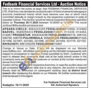 Fedbank Financial Services Ltd Gold Auctions Auction in Nellore