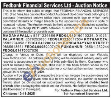 Fedbank Financial Services Ltd Gold Auctions Auction in Nellore