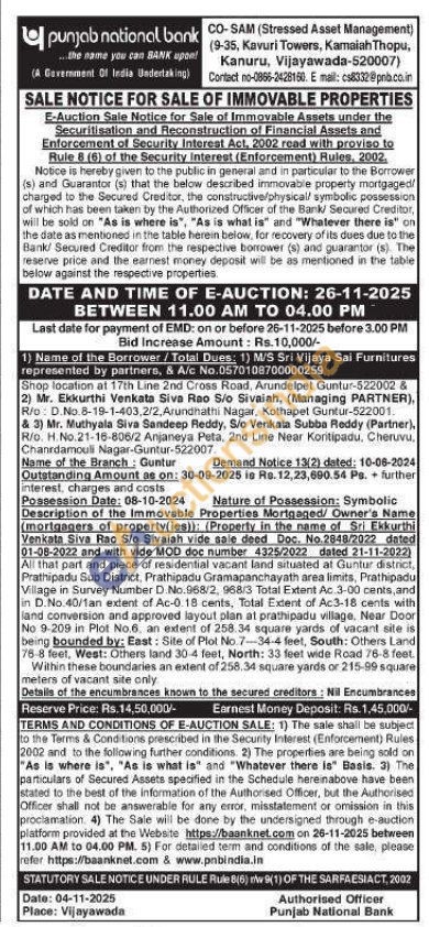 All that part and piece of residential vacant land situated at Guntur district, Prathipadu Sub District, Prathipadu Gramapanchayath area limits, Prathipadu Village in Survey Number D.No.968/2, 968/3 Total Extent Ac 3-00 cents, and in D.No.40/1an extent of Ac-0. 18 cents, Total Extent of Ac3-18 cents with land conversion and approved layout plan at prathipadu village, Near Door No 9-209 in Plot No.6, an extent of 258.34 square yards of vacant site is being bounded by: East: Site of Plot No.7-34-4 feet, South: Others Land 78-8 feet, West: Others land 30-4 feet, North: 33 feet wide Road 76-8 feet. Within these boundaries an extent of 258.34 square yards or 215-99 square meters of vacant site only