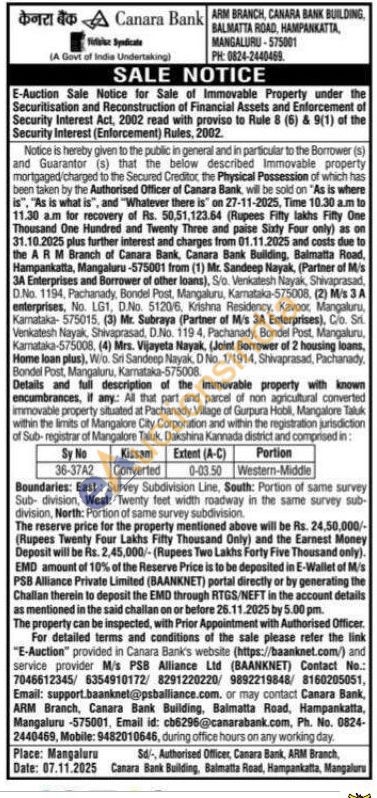 All that part and parcel of non agricultural converted immovable property situated at Pachanady Village of Gurpura Hobli, Mangalore Taluk within the limits of Mangalore City Corporation and within the registration jurisdiction of Sub-registrar of Mangalore Taluk, Dakshina Kannada district
