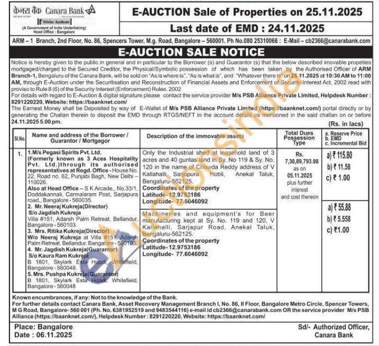 Machineries and equipment's for Beer manufacturing kept at Sy. No. 119 and 120, V Kallahalli, Sarjapur Road, Anekal Taluk,Bengaluru