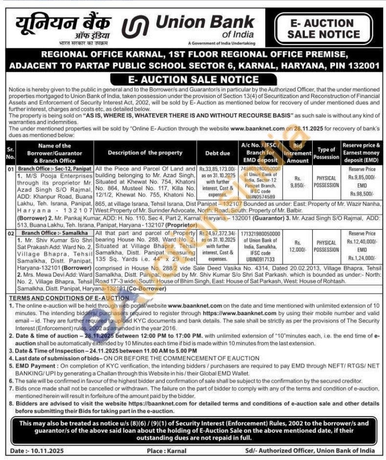 All that part and parcel of Property bearing House No. 288, Ward No. 2. Situated at Village Bhapra, Tehsil Samalkha, Distt. Panipat measuring 135 Sq. Yards i.e. 44" x 29 "feet ) comprised in House No. 288/2 vide Sale Deed Vasika No. 4314, Dated 20.02.2013, Village Bhapra, Tehsil . Mrs. Mewa Devi Add: Ward Samalkha, Distt. Panipat,