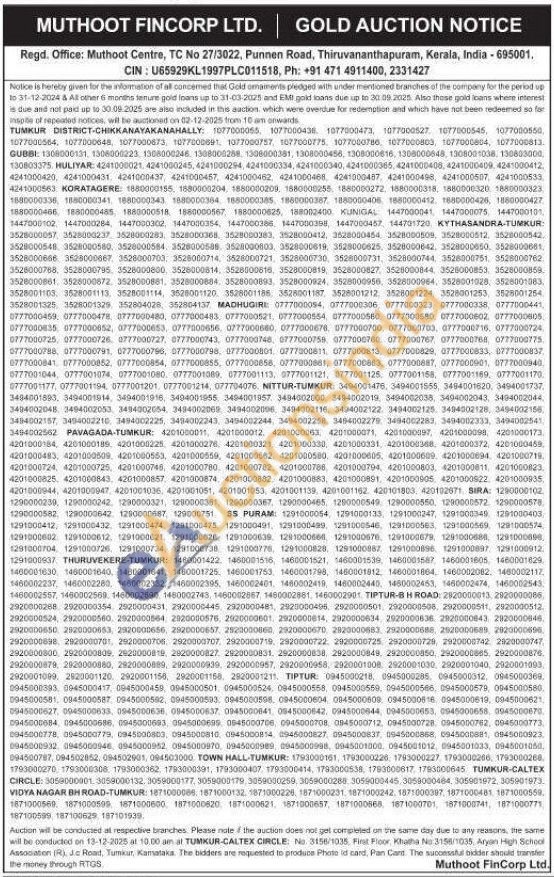 Muthoot Fincorp Ltd Gold Auctions Auction in Tumkur
