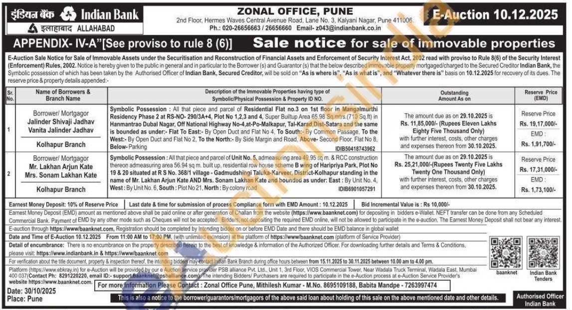 Symbolic Possession: All that piece and parcel of Residential Flat no.3 on 1st floor in Mangalmurthi Residency Phase 2 at RS-NO-290/3A+4, Plot No 1,2,3 and 4, Super Builtup Area 65.98 Sq.mtrs. (710 Sq.ft) in Hanmantrao Dubal Nagar, Off National Highway No-4,at-Po-Malkapur, Tal-Karad, Dist-Satara and the same is bounded as under: Flat To East:- By Open Duct and Flat No 4, To South: By Common Passage. To the West:- By Open Duct and Flat No 2. To the North:- By Side Margin and Road, Above-Second Floor, Flat No 8, Below-Parking
