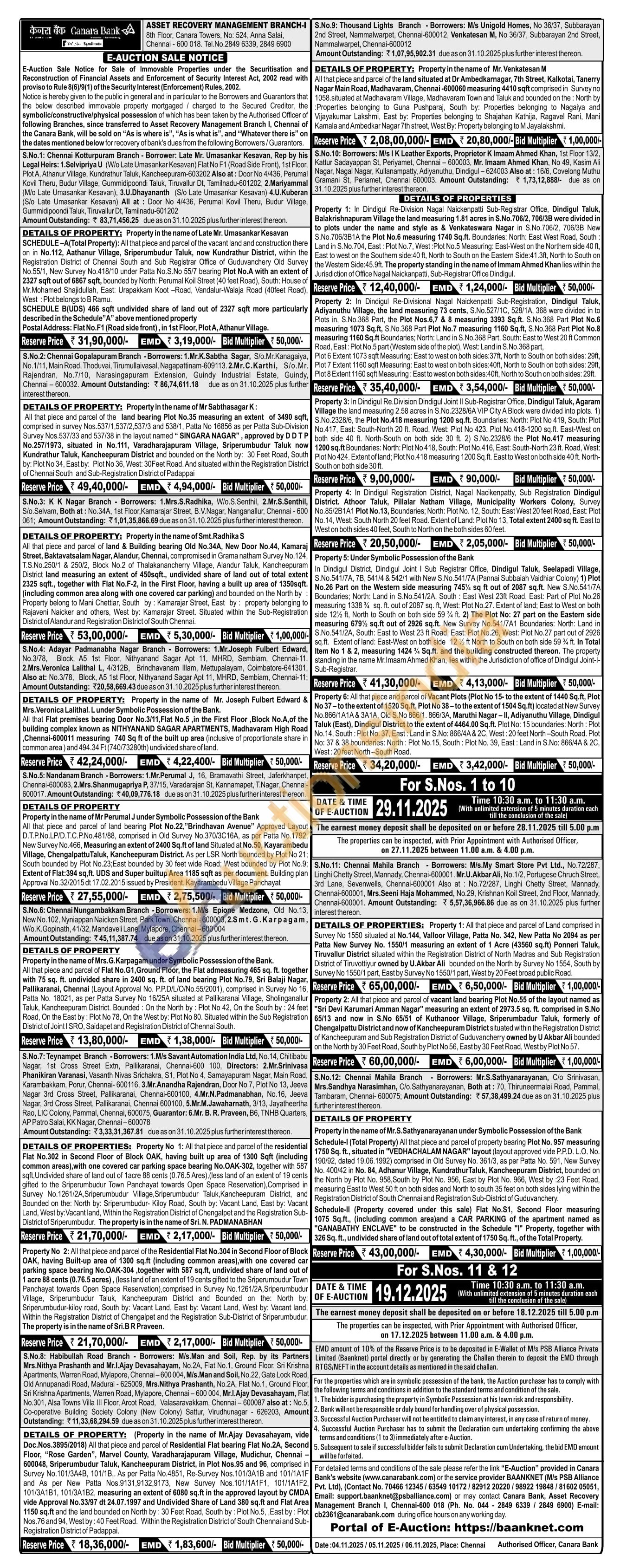 Contact (Ph. No. 044 2849 6339/2849 6900) E-mail: cb2361@canarabank.com