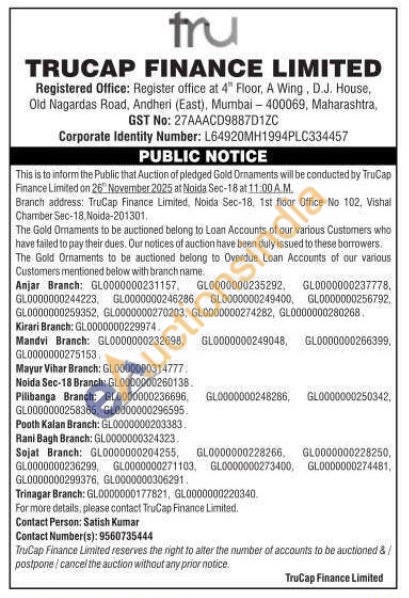 TruCap Finance Ltd Gold Auctions Auction in Anjar