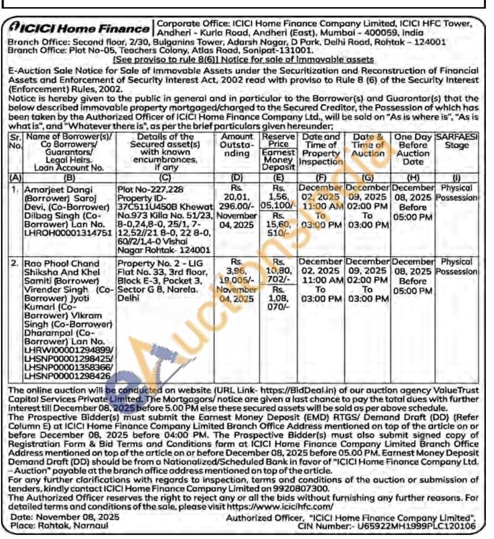 Plot No-227,228 Property ID-37C5110450B Khewat No.973 Killa No. 51/23, 8-0,24,8-0, 25/1, 7-12,52//21 8-0, 22 8-0, 60//2/1,4-0 Vishal Nagar Rohtak-124001