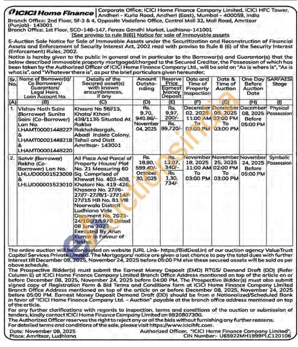 Khasra No 56//13, Khata/Kthoni 438/1135 Situated At Rakba Rakhshikargah, Abadi Indera Colony, Tehsil and Distt Amritsar-143001