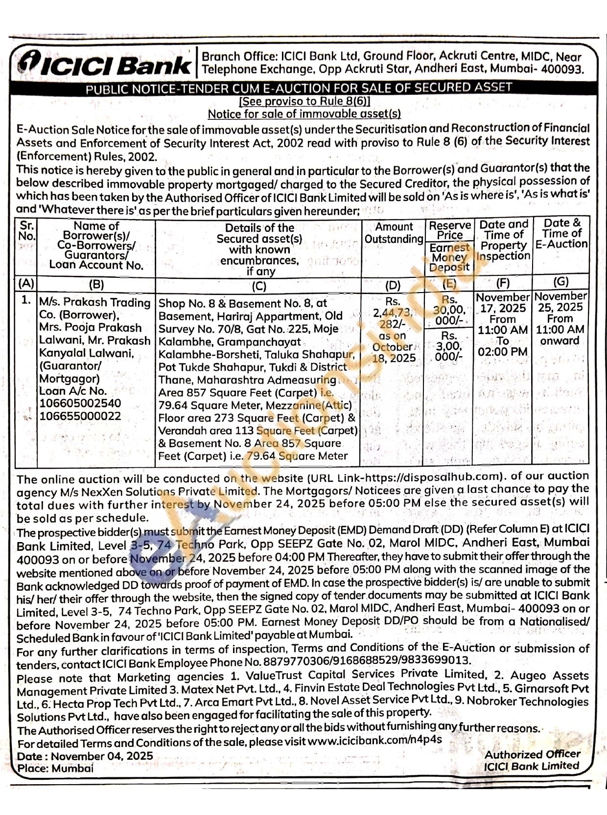 Shop No. 8 & Basement No. 8, at Basement, Hariraj Appartment, Old Survey No. 70/8, Gat No. 225, Moje Kalambhe, Grampanchayat Kalambhe-Borsheti, Taluka Shahapur, Pot Tukde Shahapur, Tukdi & District Thane, Maharashtra Admeasuring Area 857 Square Feet (Carpet) i.e. 79.64 Square Meter, Mezzanine(Attic) Floor area 273 Square Feet (Carpet) & Verandah area 113 Square Feet (Carpet) & Basement No. 8 Area 857 Square Feet (Carpet) i.e. 79.64 Square Meter