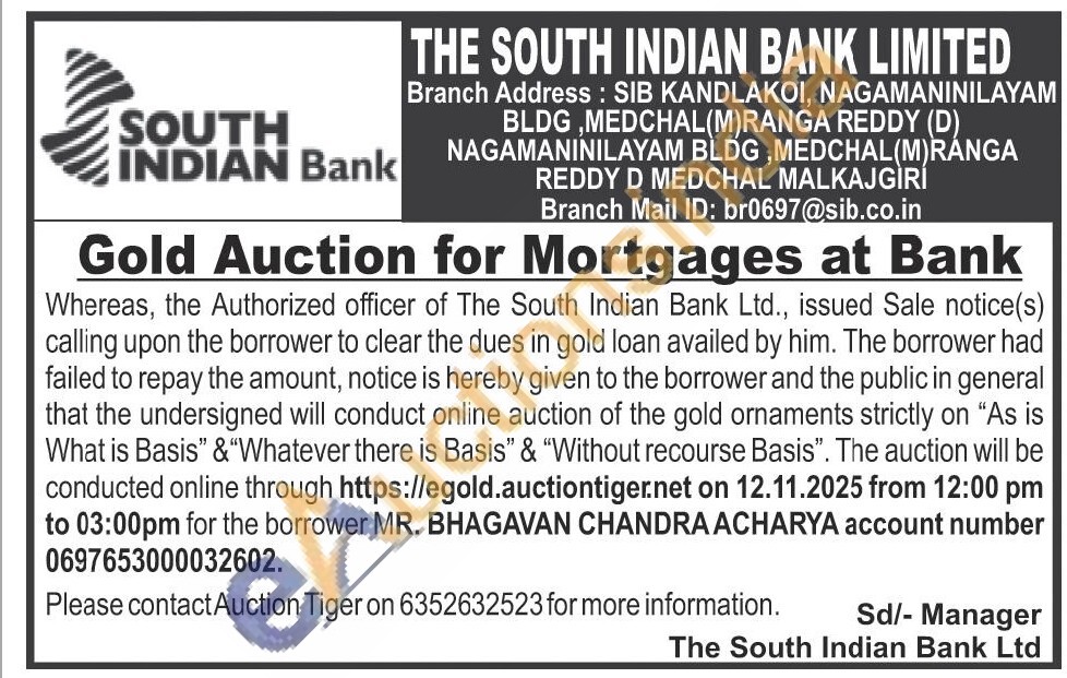 South Indian Bank Gold Auctions Auction in Medchal-Malkajgiri