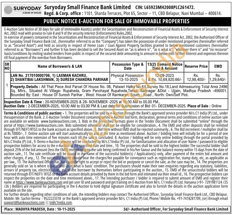 Property. Details: All That Piece And Parcel Of House No. 06, Patwari Halka No.64, Survey No. 18, Land Admeasuring Total Area 2496 Mtrs., Situated At Village- Rupaheda, Gram Panchayat Rupaheda, Tehsil. Badnagar &Dist Ujjain, Madhya Pradesh -456001.