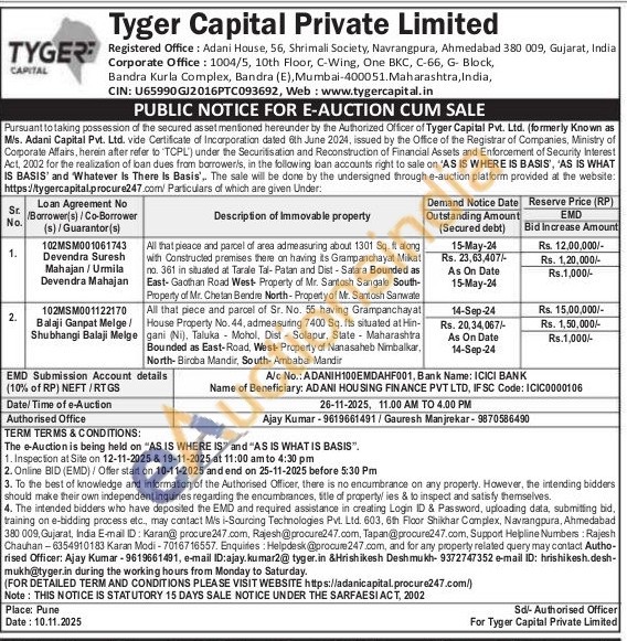 All that pieace and parcel of area admeasuring about 1301 Sq.ft along with Constructed premises there on having its Grampanchayat Milkat no. 361 in situated at Tarale Tal-Patan and Dist-Satara Bounded as East-Gaothan Road West Property of Mr. Santosh Sangale South-Property of Mr. Chetan Bendre North-Property of Mr. Santosh Sanwate