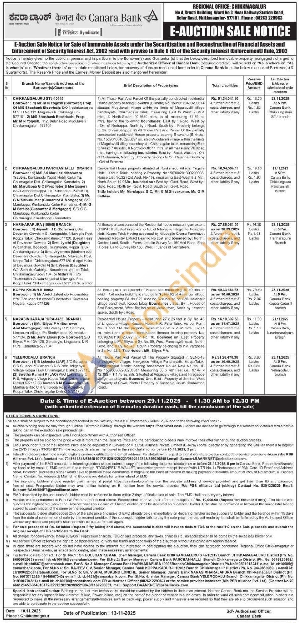4) All those parts and parcel of House site measuring 60*40 feet in which 7x6 meter building is situated in Sy No 92 of Harandur village bearing property SI No 620 Asst no 620 house no 620 Harandur village panchayat, Koppa taluq. Boundaries: East By: House of Smt Sarojamma, West By: house of victor tavro, North by vacant space, South by: Road.