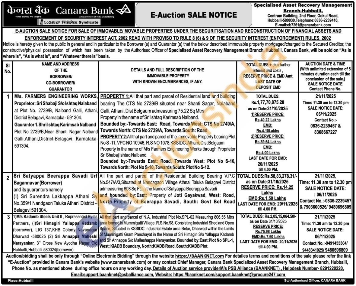 PROPERTY 1:All that part and parcel of Residential land and building bearing The CTS No 2739/B situated near Shanti Sagar, Nalaband Galli, Athani, Dist Belgaum admeasuring 75.22 Sq Mtrs Property in the name of Sri Ishtaq Karimsab Nalband.
