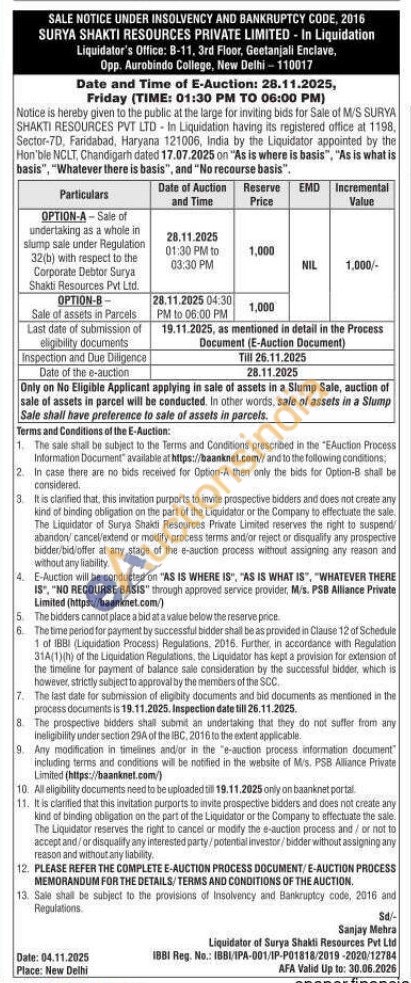 OPTION-A-Sale of undertaking as a whole in slump sale under Regulation 32(b) with respect to the Corporate Debtor Surya Shakti Resources Pvt Ltd