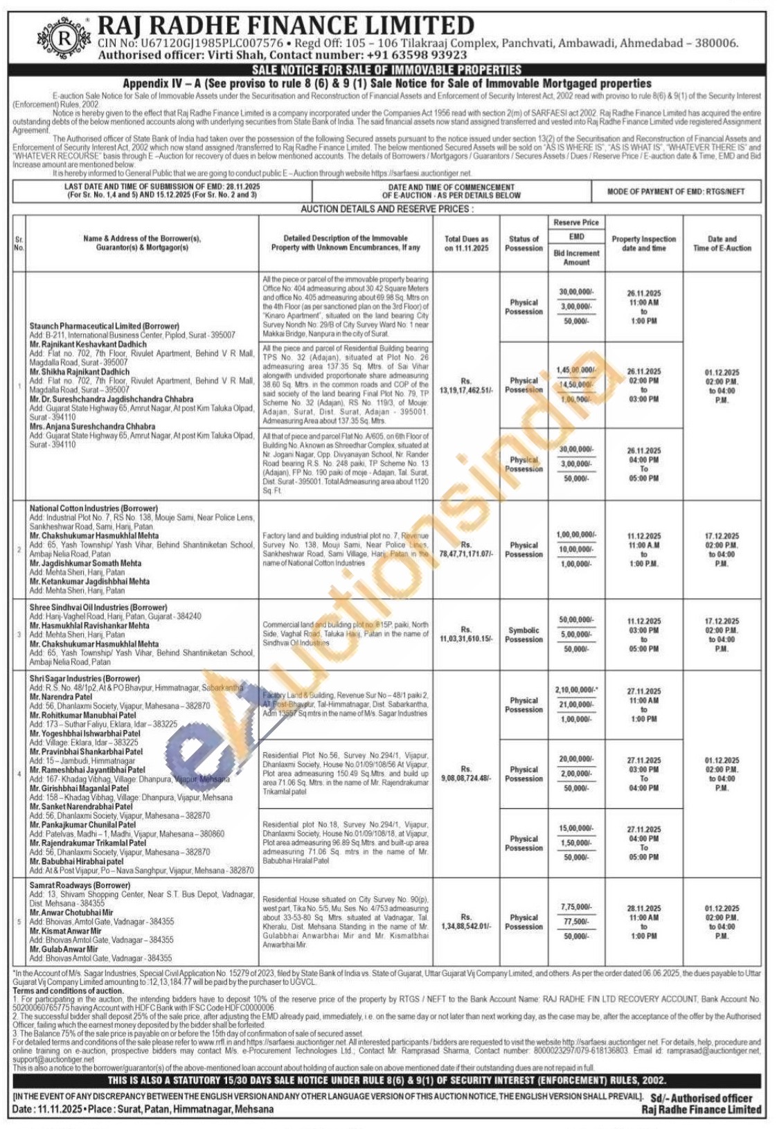 Factory Land & Building, Revenue Sur No-48/1 paiki 2, AT Post-Bhavpur, Tal-Himmatnagar, Dist. Sabarkantha, Adm 13557 Sq mtrs in the name of M/s Sagar Industries