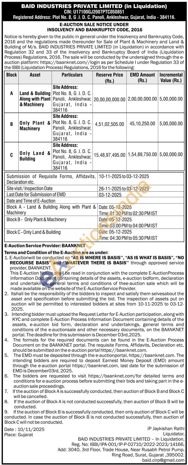 Only Plant & MachinerySite Address: BPlot No. 8, G.I. D. C. Panoli, Ankleshwar, Gujarat, India -384116