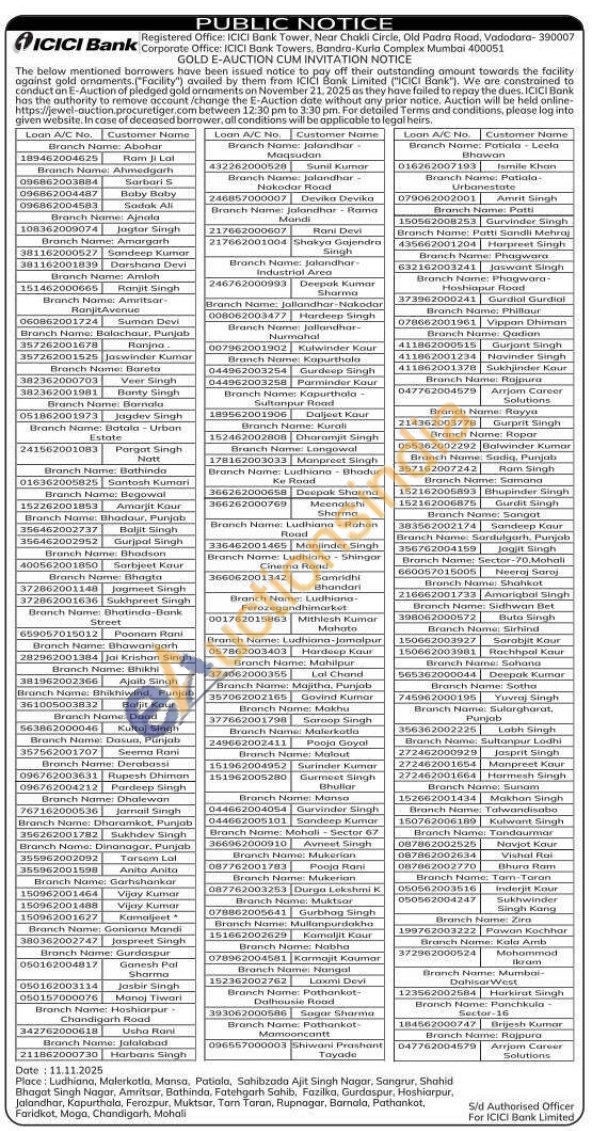 ICICI Bank Gold Auctions Auction in Ludhiana