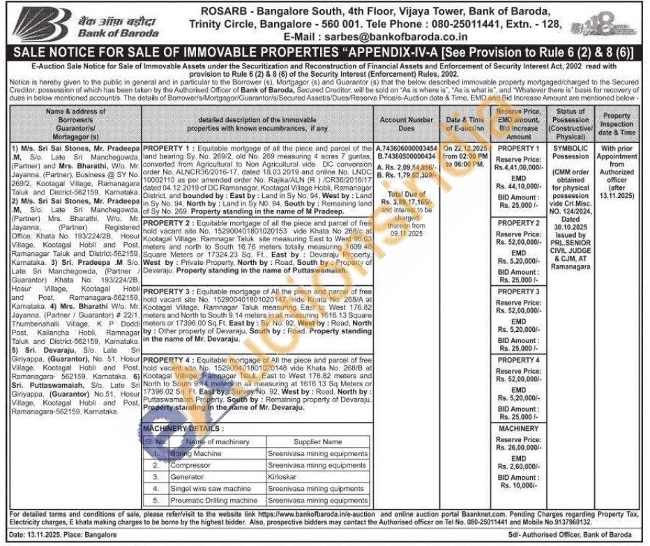 contact the Authorised officer on Tel No. 080-25011441 and Mobile No.9137960132