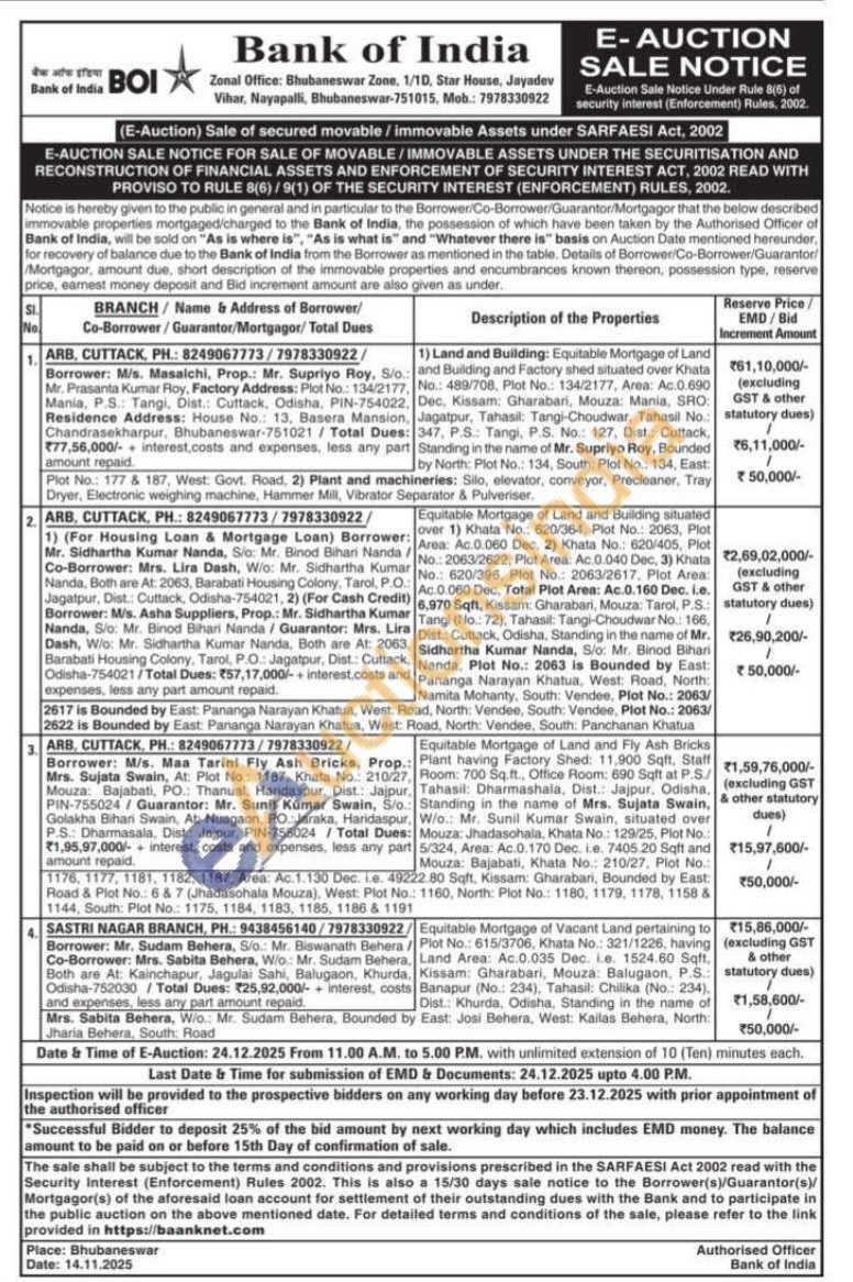 Contact ARB, CUTTACK, PH.: 8249067773/7978330922