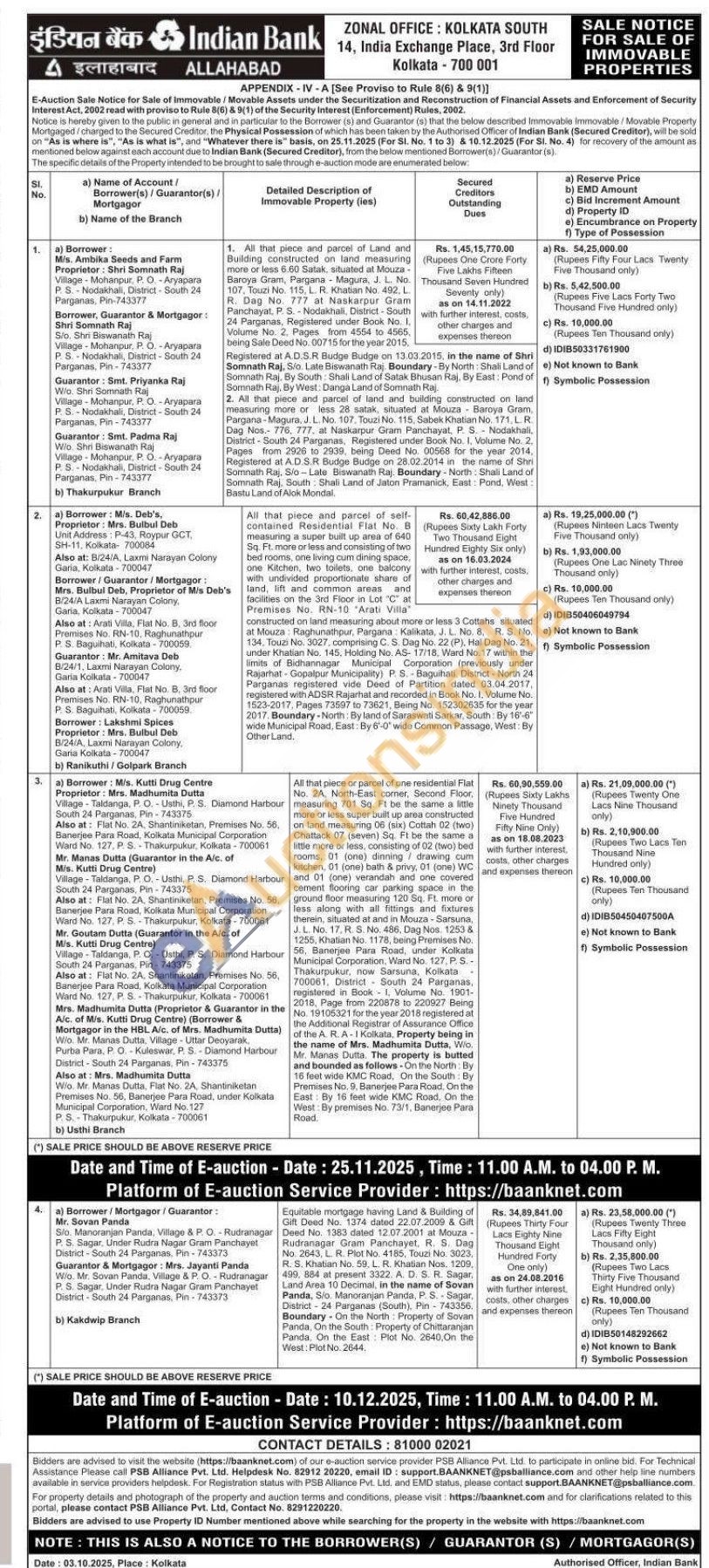 Equitable mortgage having Land & Building of Gift Deed No. No. 1374 dated 22.07.2009 & Gift & Gift Deed No. 1383 dated 12.07.2001 at Mouza Rudranagar Gram Panchayet, R. S. Dag No. 2643. L. R. Plot No. 4185, Touzi No. 3023. RS. Khatian No. 50, L. R. Khallan Nos. 1209 499. 884 at present 3322. A. DS. R. Sagar. Land Area 10 Decimal, in the name of Sovan Panda, Sio. Manoranjan Panda, P. S Sagar, District-24 Parganas (South), Pin-743356 Boundary - On the North Property of Sovan Panda, On the South Property of Chittaranjan Panda. On the East Plot No. 2640.On the West Plot No: 2844