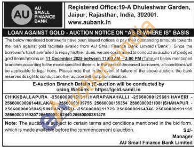 AU Small Finance Bank Gold Auctions Auction in Jaipur