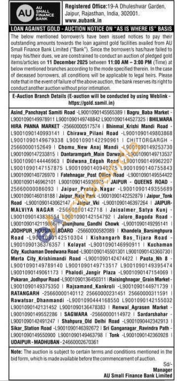 AU Small Finance Bank Gold Auctions Auction in Jaipur