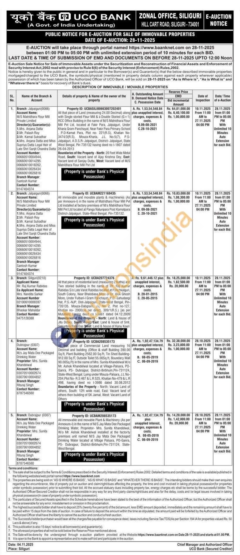 All that piece of Land (measuring 24.00 Decimal) along with Single storied Fitur Mill & a Double Storied (6+1) RCC Office Building in the name of M/S Matridhara Flour Mill Pvt Ltd, located at Fakir Para, Jalpaiguri, Under Khana Gram Panchayat, Near Fakir Para Primary School P.O-Kamat Para, Piot no 221(R.S), Khatian No 3474/3(RS), Mouza-Kharia, J.L No-5(7), P.S-Jalpaiguri, A.D.S.R- Jalpaiguri, District-Jalpaiguri, State West Bengal, Pin 735132 having deed no 1-1807 dated 26-04-2013
