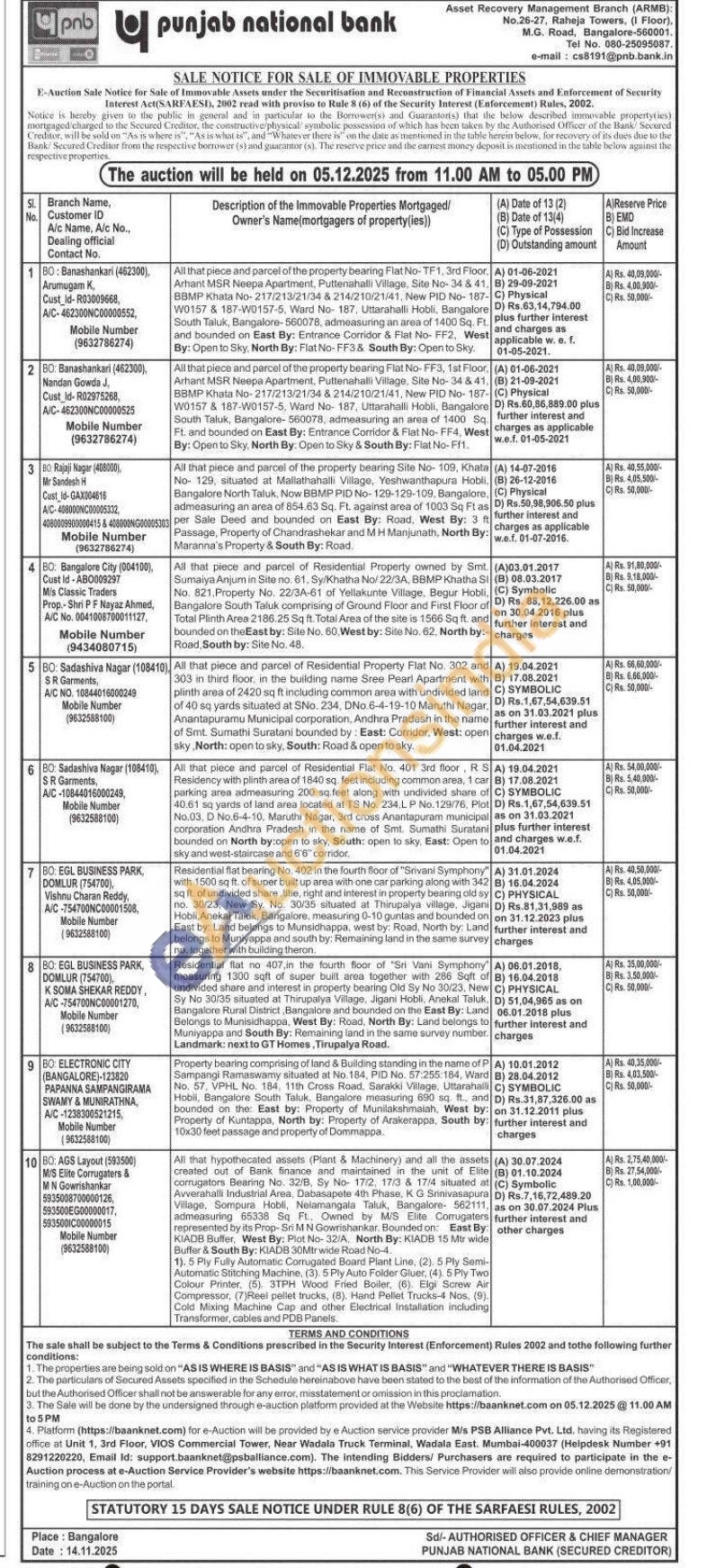 6) All that piece and parcel of Residential Flat No. 401 3rd floor, R S Residency with plinth area of 1840 sq. feet including common area, 1 car parking area admeasuring 200 sq.feet along with undivided share of 40.61 sq yards of land area located at TS No. 234.LP No. 129/76. Plot No.03, D No.6-4-10, Maruthi Nagar, 3rd cross Anantapuram municipal corporation Andhra Pradesh in the name of Smt. Sumathi Suratani bounded on North by:open to sky, South: open to sky, East: Open to sky and west-staircase and 6'6" corridor