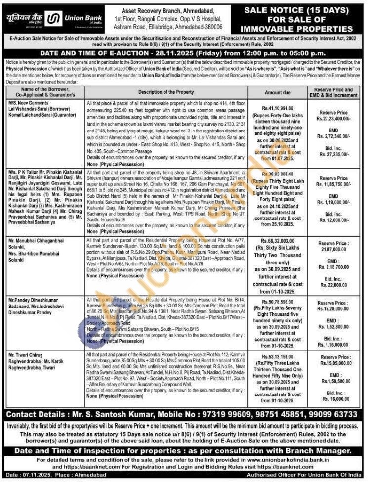 All that piece & parcel of all that immovable property which is shop no 414, 4th floor, admeasuring 225.00 sq feet together with right to use common areas passage, amenities and facilities along with proportionate undivided rights, title and interest in land in the scheme known as laxmi vishnu market bearing city survey no 2130, 2131 and 2148, being and lying at mouje, kalupur ward no. 3 in the registration district and sub district Ahmedabad-1 (city), which is belonging to Mr. Lal Vishandas Sarai and which is bounded as under:- East: Shop No. 413, West Shop No. 415, North-Shop No. 405, South-Common Passage