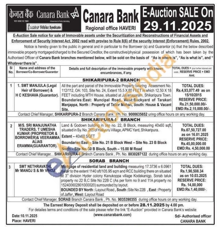 Contact Chief Manager, SORAB Branch Canara Bank, Ph. No. 9035390355