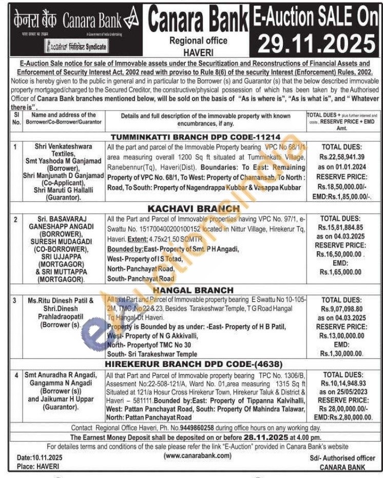 2) All the Part and Parcel of Immovable properties having VPC No. 97/1, e-Swattu No. 151700400200100152 located in Nittur Village, Hirekerur Tq. Haveri. Extent: 4.75x21.50 SQMTR Bounded by: East-Property of Smt. PH Angadi, West-Property of IS Totad, North-Panchayat Road, South-Panchayat Road