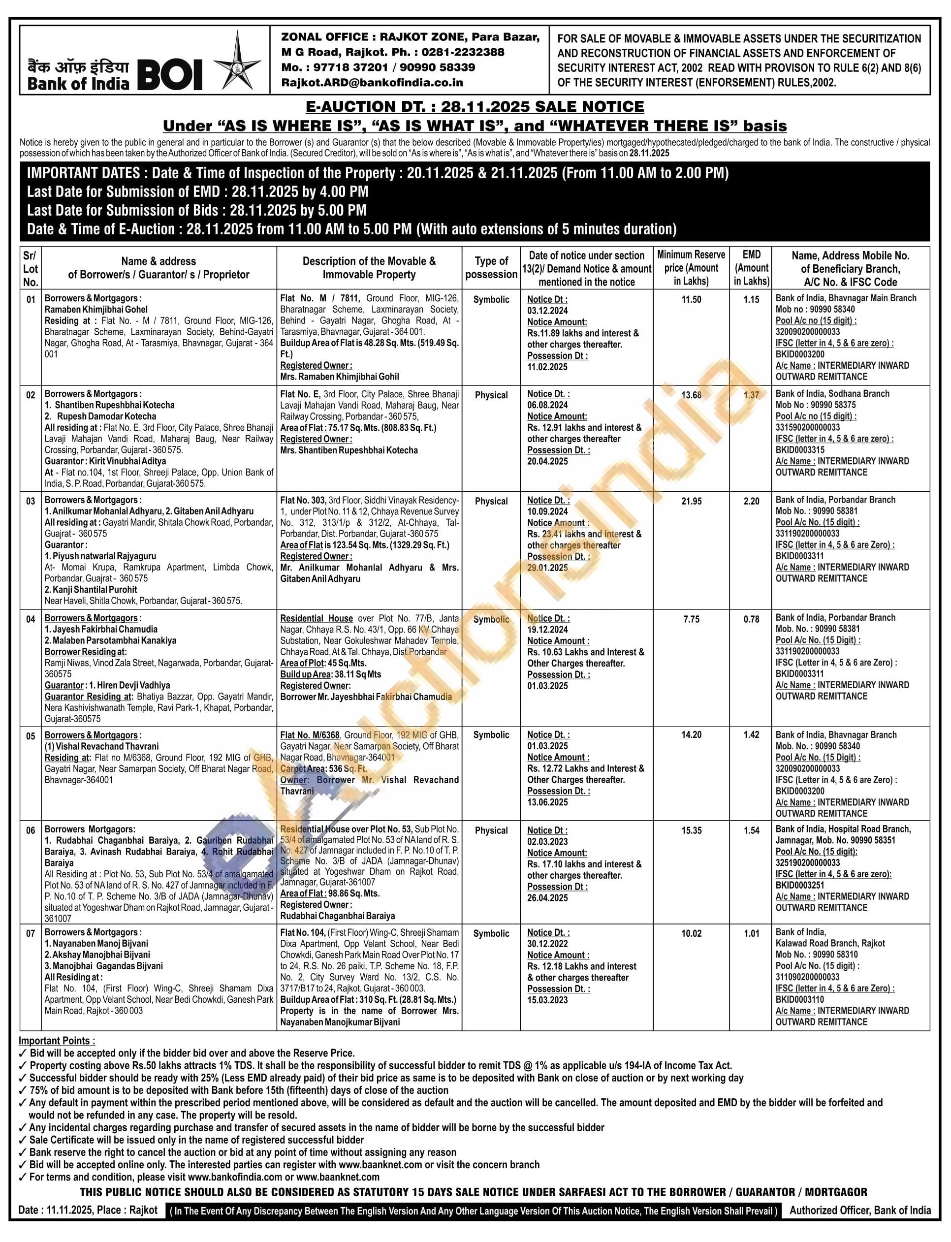 Residential House over Plot No. 53, Sub Pict No. 534 of amal malgamated Plot No. 53 of NA land of S No. 427 of Jamnagar included in F. P. No. 10 of T. P. Scheme No. 38 of JADA (Jamnagar-Dhunav Rajkot Road shuated at Yogeshwar Dham Jamnagar, Gujarat-361007 Arms of Flat: 98.06 54. Mts. Registered Owner: Rudabhai Chaganbhai Barziys