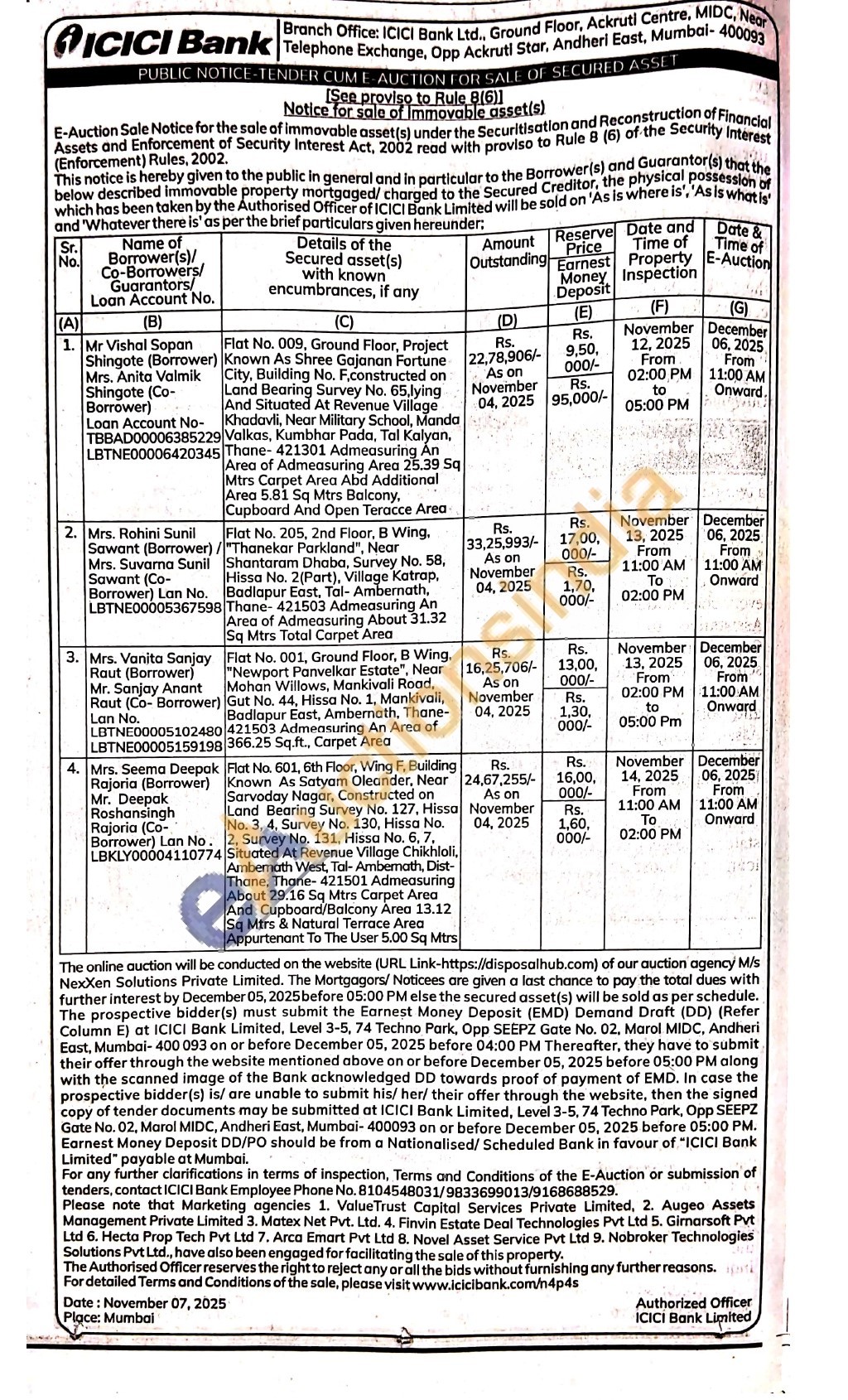 Flat No. 205, 2nd Floor, B Wing, / "Thanekar Parkland", Near Shantaram Dhaba, Survey No. 58, Hissa No. 2(Part), Village Katrap, Badlapur East, Tal-Ambernath, Thane- 421503 Admeasuring An Area of Admeasuring About 31.32 Sq Mtrs Total Carpet Area
