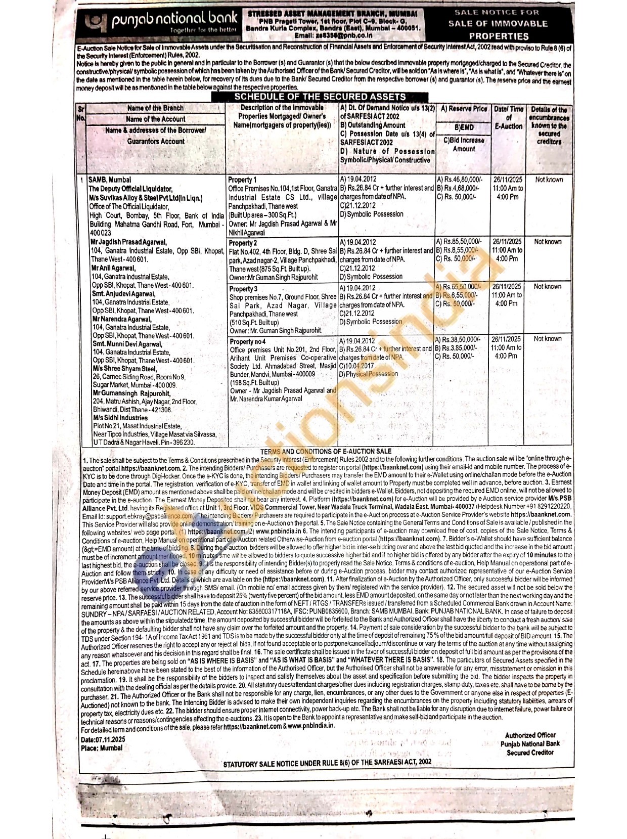 Property no 4 Office premises Unit No.201, 2nd Floor, Arihant Unit Premises Co-operative Society Ltd. Ahmadabad Street, Masjid Bunder, Mandvi, Mumbai-400009 (198 Sq.Ft. Built up) Owner-Mr Jagdish Prasad Agarwal and Mr. Narendra Kumar Agarwal