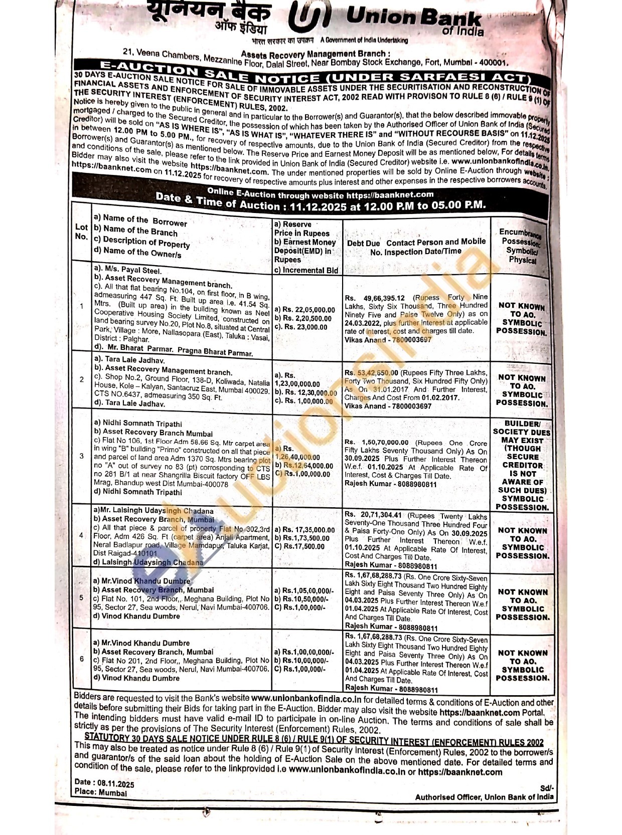 All that flat bearing No.104, on first floor, in B wing. admeasuring 447 Sq. Ft. Built up area i.e. 41.54 Sq. Mtrs. (Built up area) in the building known as Neel Cooperative Housing Society Limited, constructed on land bearing survey No.20, Plot No.8, situated at Central Park, Village: More, Nallasopara (East), Taluka: Vasai, District: Palghar.