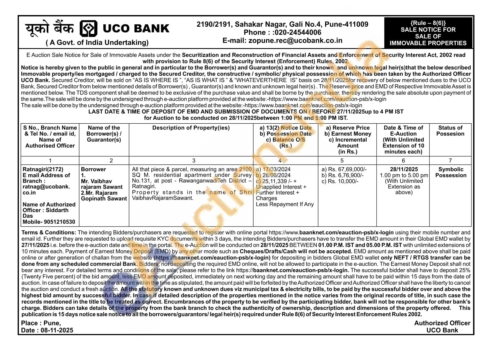 All that piece & parcel, measuring an area 2100 SQ M. residential apartment under Survey No.131, at post Rawanganwadi Teh District Ratnagiri.